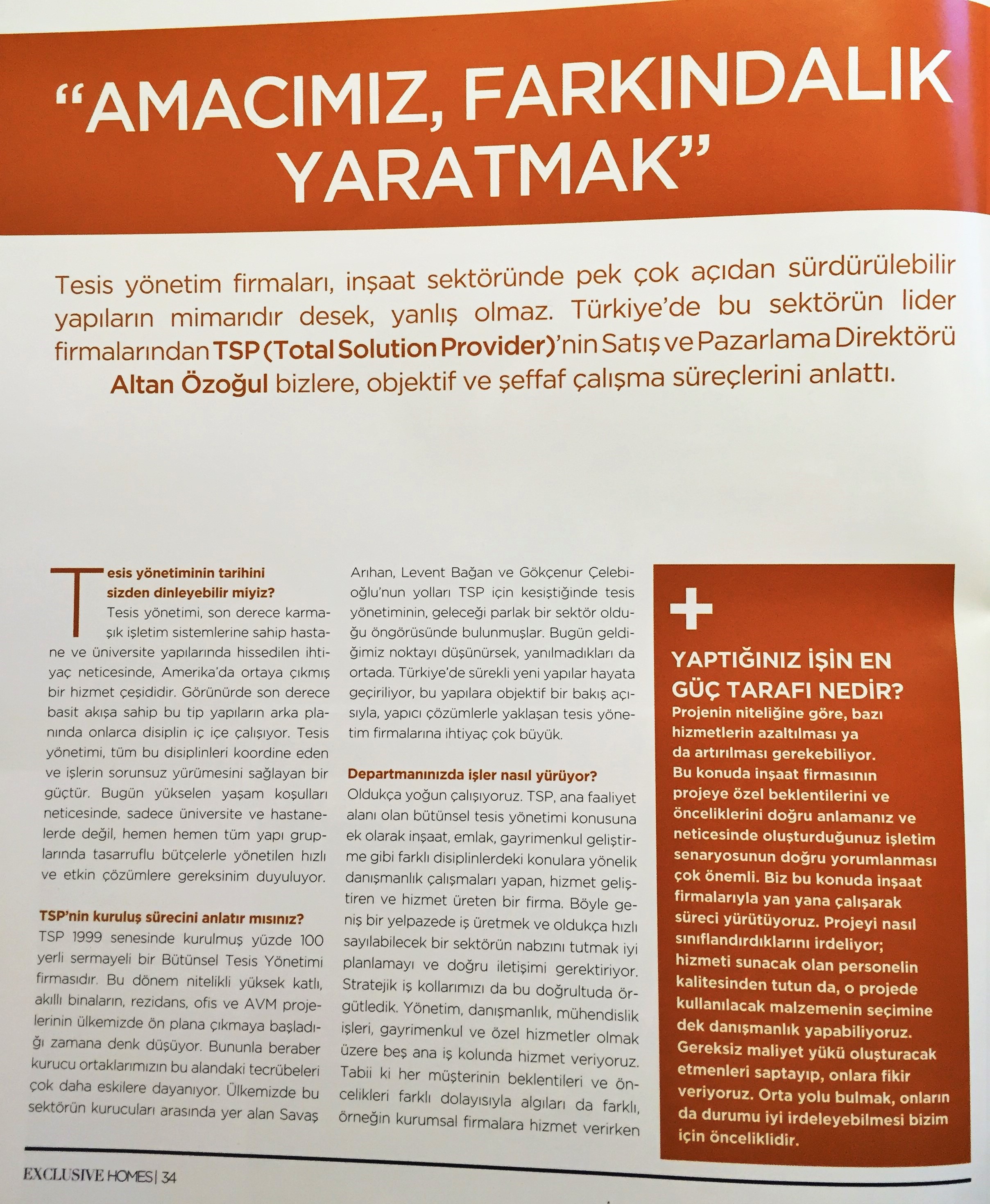 TSP Satış ve Pazarlama Direktörü Sayın Selçuk Altan Özoğul ile bir söyleşi.