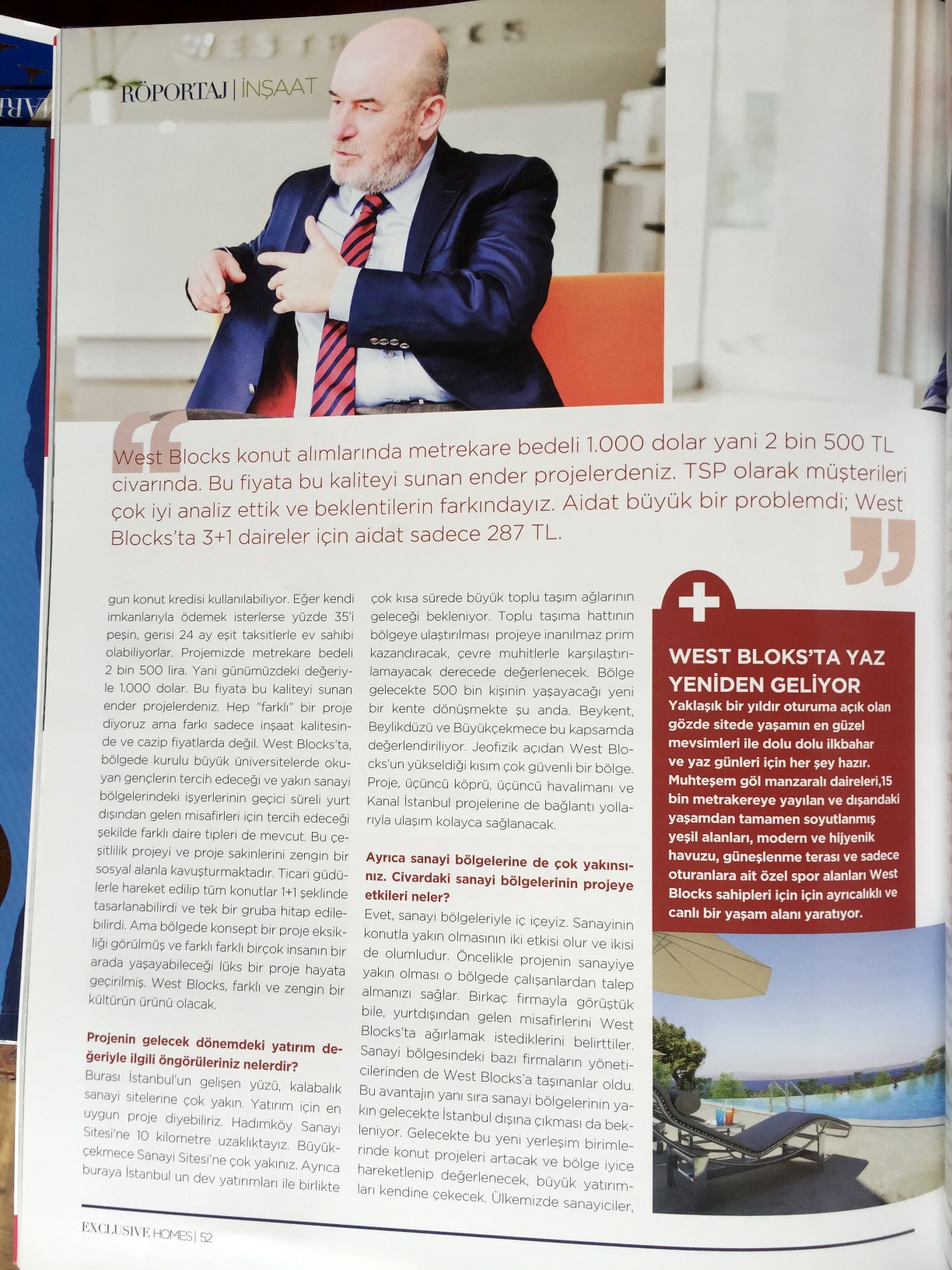 TSP İcra Kurulu Üyesi Sn. Fahrettin Gökşin ile, Bilgili Holding'in West Blocks projesi ve Büyükçekmece bölgesinin geleceği üzerine keyifli bir söyleşi.