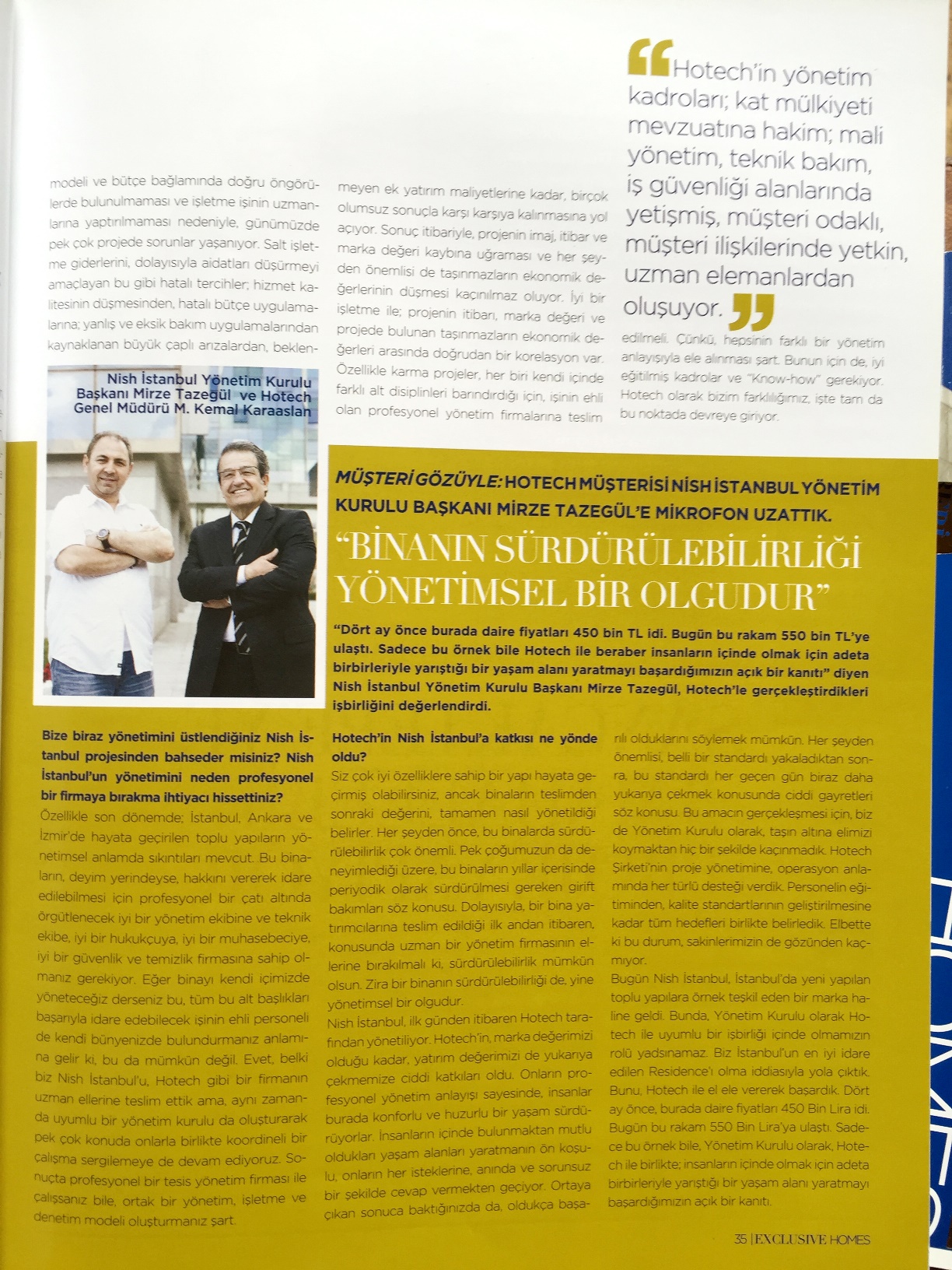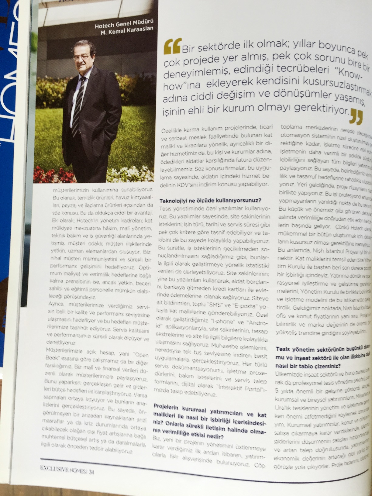 TSP Grup Şirketlerinden TSP Genel Müdürü Sn. Kemal Karaaslan ile sürdürülebilir özel bir kalite seviyesinde mükemmel hizmet sunulan, yaşam tarzı ve yükselen değeri ile sahiplerini mutlu eden konut siteleri üzerine bir söyleşi.