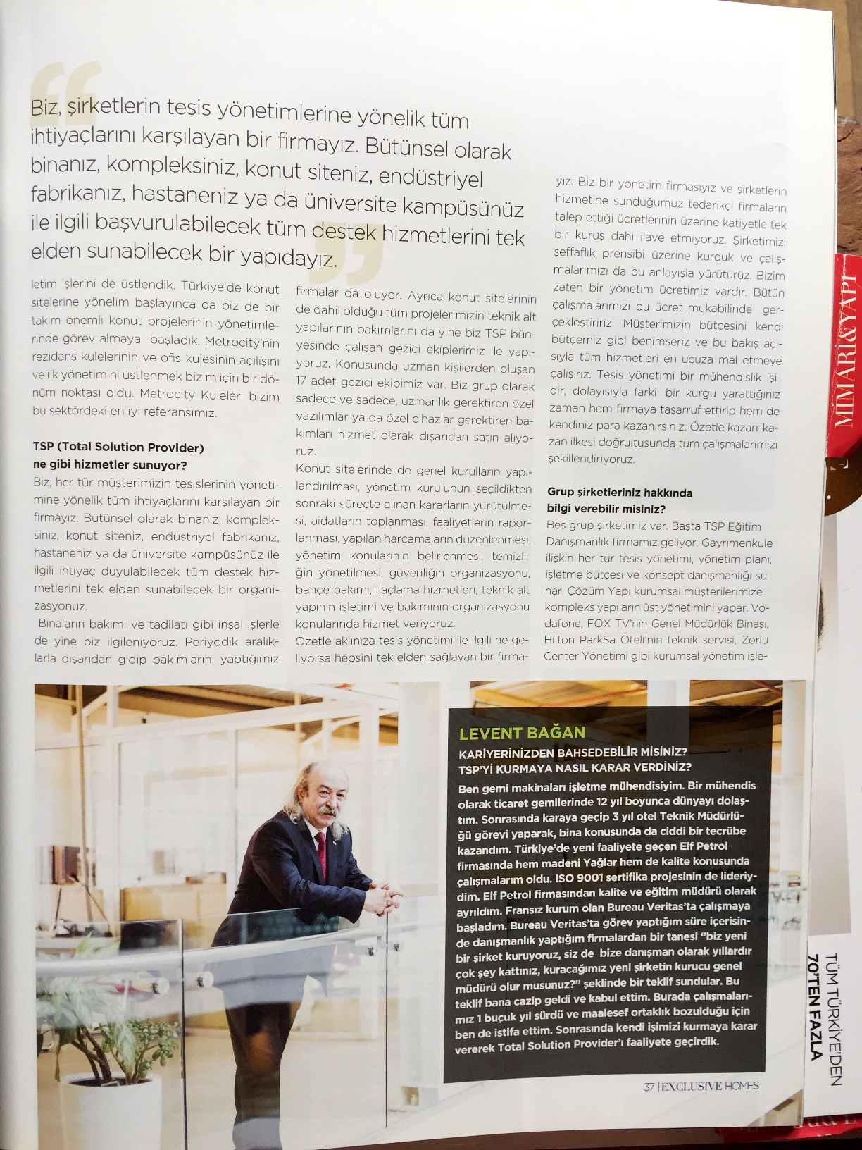 TSP Yönetim Kurulu Üyesi Sn. Levent Bağan ile TSP, Facility Management (Tesis Yönetimi), Outsourcing (Dış Kaynak Kullanımı) ve tasarruf konulu bir söyleşi.