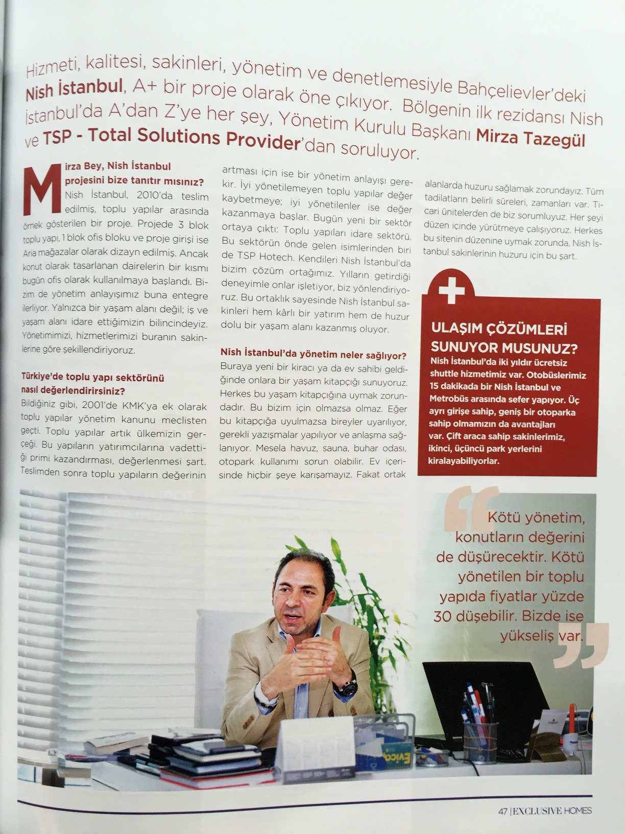 Nish İstanbul Kompleksi Yönetim Kurulu Başkanı Sn. Mirza Tazegül ve TSP'ın Operasyon Müdürlerinden Sn. Celaleddin Koç ile Bütünsel Tesis Yönetimi konusunda bir söyleşi.